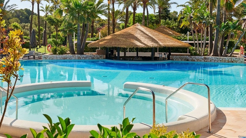This Majorca hotel offers 354 sleek guest units across 15 categories: ranging from Adult’s Area Double Rooms to Swim-up Double Rooms to Deluxe Junior Suite. The standard Double Room with a Balcony offers a king-sized bed, minibar, tea or coffee-making facilities, television, a foldaway/Z bed and an ensuite bathroom with shower in bath.