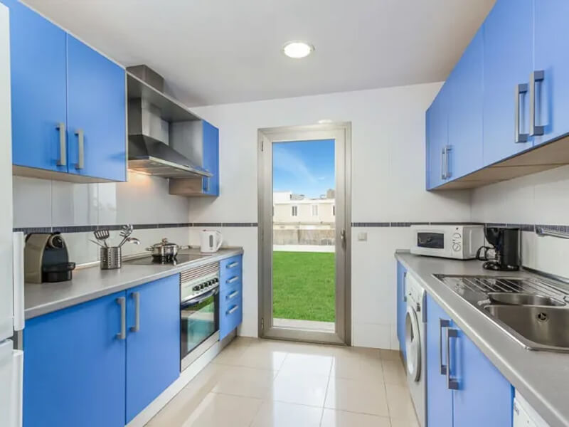 Inside, Villa Marinda offers bright, comfortable interiors ideal for relaxed holiday living. The villa features a cosy lounge with television and dining space, alongside a fully equipped kitchen with oven, hob, microwave and essential appliances. The three bedrooms are simply styled for restful nights, while the bathroom includes modern conveniences. Air conditioning helps keep things cool during warmer months, and practical touches such as washing facilities and Wi-Fi ensure a stress-free stay for families or small groups of up to six people.