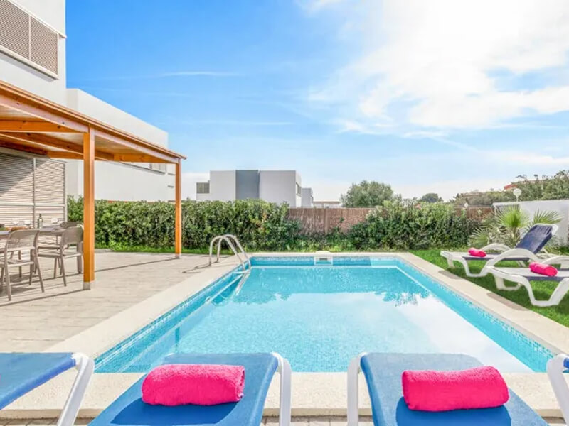 Villa Marinda is designed for laid-back outdoor living. At its heart is a private swimming pool surrounded by a spacious terrace with loungers, perfect for lazy afternoons and cooling dips. A shaded dining area and built-in barbecue invite long, sociable meals outdoors, while gardens add a peaceful touch. Guests also benefit from private parking and Wi-Fi, plus easy access to Cala’n Bosch’s marina, shops and sandy beach, all just a short walk or drive away.