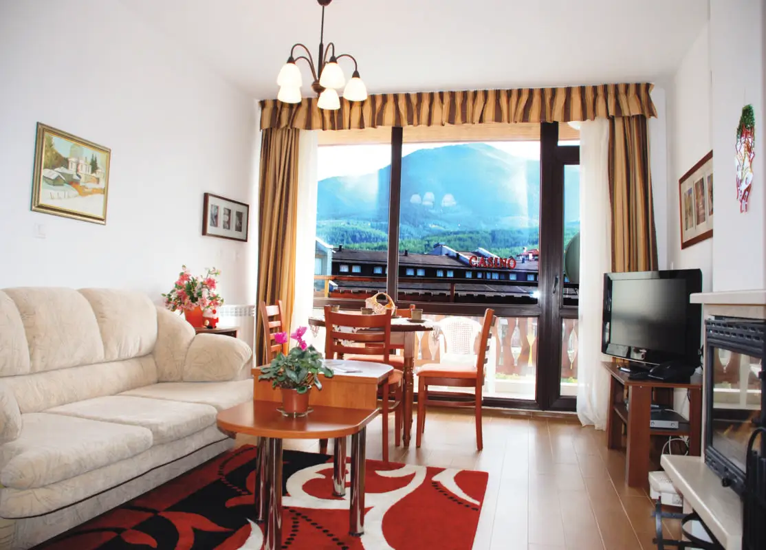 With 47 spacious apartments, Elegant Lux Bansko feel like a private alpine hideaway. Expect plush bedding, ensuite bathrooms and thoughtful comforts that make unwinding effortless. Many rooms feature balconies with mountain or garden views, while fully-equipped kitchenettes offer flexibility for longer stays. Warm decor, soft lighting and practical amenities like TVs, sofas, and dining tables create a homely atmosphere, perfect for sinking into after crisp mountain days.
