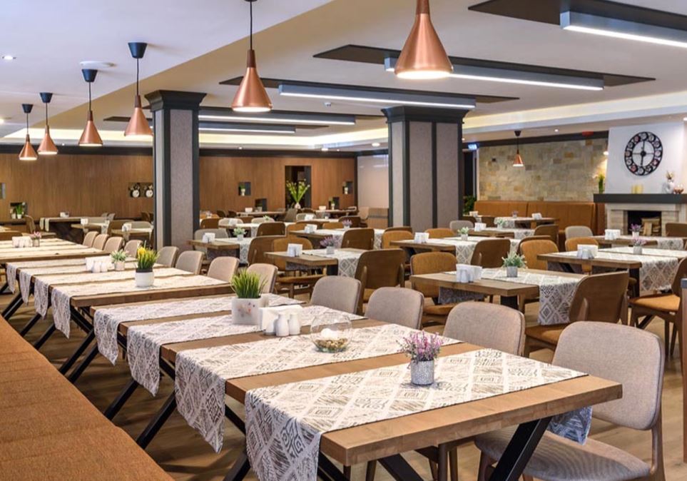 Hotel Lion Borovets offers varied dining options, including its main restaurant and a traditional Mehana serving authentic Bulgarian cuisine. Guests can unwind in the cosy lobby bar, complete with inviting fireplaces perfect after a day on the slopes. Evening relaxation continues with a welcoming atmosphere ideal for drinks, socialising and enjoying the hotel’s warm mountain charm.