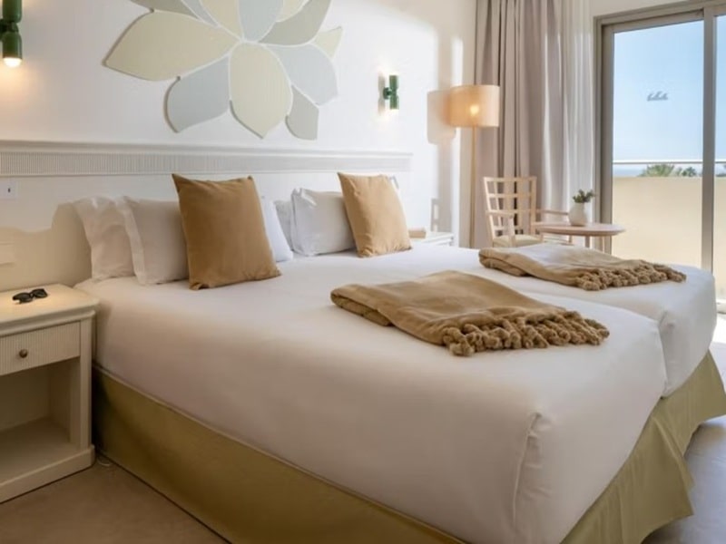 Iberostar Waves Gaviotas Park has a total of 237 modern units across 17 categories; ranging from Double Pool Access Rooms through to Senior Pool-View Family Suites. Double Pool Access Rooms are free of single-use plastic and offer air-conditioning, twin beds with two types of pillow, telephone, television, cot on request, complimentary Wi-Fi, safe and minibar to hire, 100% renewable energy, unlimited purified water, bathroom with shower, hairdryer, and magnifying mirror; and terrace with pool access, sun loungers, and hammock chairs.