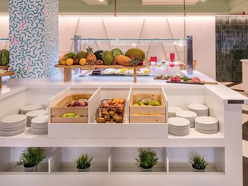 The hotel offers 312 modern units across six categories, from Apartments to Deluxe Apartments. Each features a balcony or terrace, a bright living and dining area with sofa bed, air‑conditioning, television, and Wi‑Fi. A practical kitchenette includes a microwave and sink, while the separate twin bedroom adds extra comfort. You’ll also find a minibar, safe, and a well‑appointed bathroom with shower, WC, makeup mirror, and hairdryer, creating a convenient base for a relaxed stay.