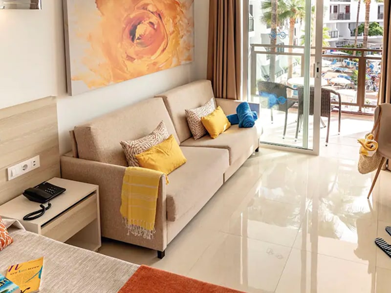 TUI SUNEO Tamaimo Tropical boasts 372 rooms, including studios and one- or two-bedroom apartments. Each room is equipped with essential comforts like air-conditioning, satellite TV, a telephone, and a private balcony. Guests can enjoy self-catering amenities such as an oven, microwave, fridge, and cooking rings, along with a bathroom and a safe box for added convenience.
