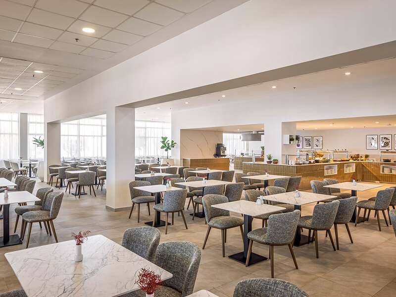 The Main Restaurant serves buffet-style Dalmatian and Mediterranean cuisine, featuring fresh fish and meat specialities. An elegant terrace restaurant nearby offers beautiful views of the Croatian Sea, where guests can enjoy local dishes made with seafood and home-grown vegetables. Tucepi Beer & Burger House, located by the beach and promenade, offers tasty burgers, desserts, and beers. Hygge Beach Bar serves fresh juices and coffee in the morning, with cocktails, signature drinks, and cakes in the afternoon. Le Coq Lobby Bar and Camelia Pool Bar provide international drinks, with evening entertainment including a kids’ mini disco and live music.