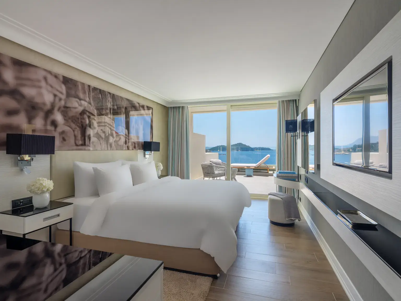 Rooms at Rixos Premium Dubrovnik offer elegant, contemporary comfort with high‑end amenities designed for a luxurious stay. Each room features modern furnishings, air conditioning, a flatscreen TV, minibar, safe and complimentary Wi‑Fi, ensuring convenience and relaxation . Private bathrooms include premium toiletries, walk‑in showers or bathtubs and plush bathrobes. Many rooms also provide balconies or large windows with Adriatic Sea views, enhancing the experience. With quality bedding, soundproofing and thoughtful touches throughout, these rooms create a refined retreat close to Dubrovnik’s historic centre.