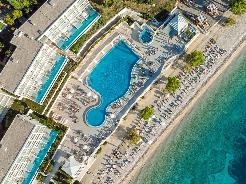 TUI Blue Adriatic Beach is nestled at the foot of a pine-covered mountain in Makarska, with sweeping views of the Adriatic Sea and Hvar Island in sight.