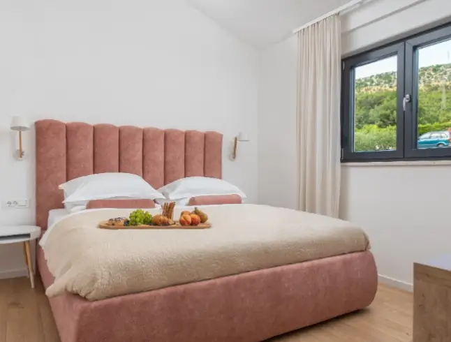 Life at Villa Nacelo revolves around the simple pleasures of the Adriatic. Mornings begin with coffee on a sunlit terrace, while evenings invite relaxed al fresco dinners prepared in your own kitchenette or enjoyed at nearby waterfront restaurants. The surrounding coastline provides the entertainment, crystal-clear swimming spots, boat trips between hidden coves and gentle seaside strolls. As the sun dips behind the islands, village tavernas glow with warm light, offering fresh seafood, local wines and that unmistakably relaxed Croatian charm.
