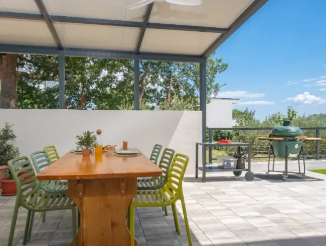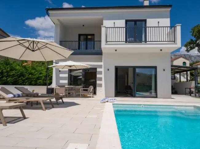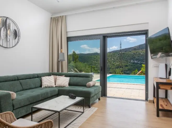 The villa offers a peaceful range of amenities, including self-catering apartments, outdoor terrace areas, sun loungers, an outdoor pool, barbecue facilities, private or nearby parking, Wi-Fi throughout the property, outdoor seating spaces for al fresco dining and easy access to nearby beaches, coastal walking routes, local restaurants and charming Croatian seaside towns.