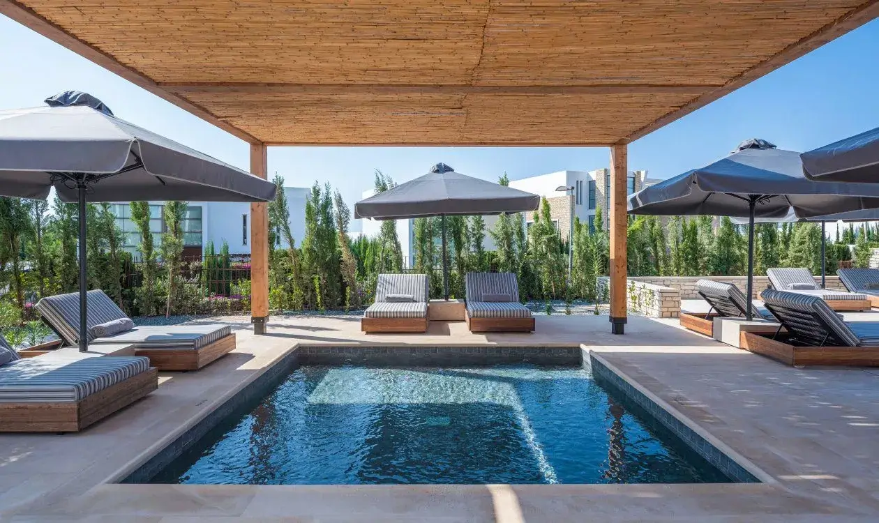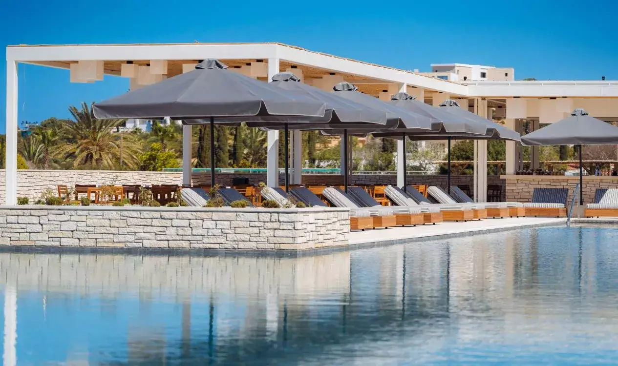 Yeronisos offers a Mediterranean and international breakfast buffet. Kohili serves seafood and Mediterranean dishes with coastal views, while Sapori specializes in authentic Italian cuisine. Bonsai presents Asian delicacies, including sushi and teppanyaki. Sky7 provides a gourmet dining experience with stunning sunset views. Thalassa Pool Bar and Kohili Restaurant Bar serve cocktails and light bites by the water. Agora’s Gelato offers sweet treats, while Chroma Lounge pairs drinks with live music. The Club delivers vibrant evening entertainment.