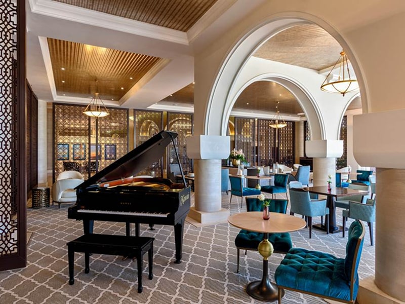 Elysium Hotel’s dining scene includes Lemonia Piazza for breakfast buffets and Epicurean Restaurant’s themed dinners. Ristorante Bacco serves authentic Italian fare, while O’Shin offers Pan-Asian cuisine and sushi. Mediterraneo showcases Cypriot and Mediterranean flavours. Café Occidental provides all-day bites and afternoon tea, Mare Nostrum caters poolside, and Astria Bar hosts relaxed evenings with live music.