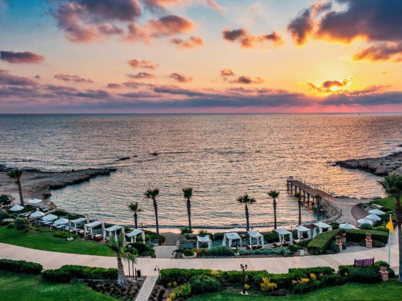 Elysium Hotel in Paphos blends luxury and Cypriot charm beside the Tombs of the Kings. Enjoy chic rooms, gourmet dining, spa treatments, tennis, Pilates, and kids’ activities. Explore nearby attractions or unwind with minibar drinks and Smart TV. Five restaurants and lively bars complete your stay with Mediterranean, Italian, and Pan-Asian flavours.