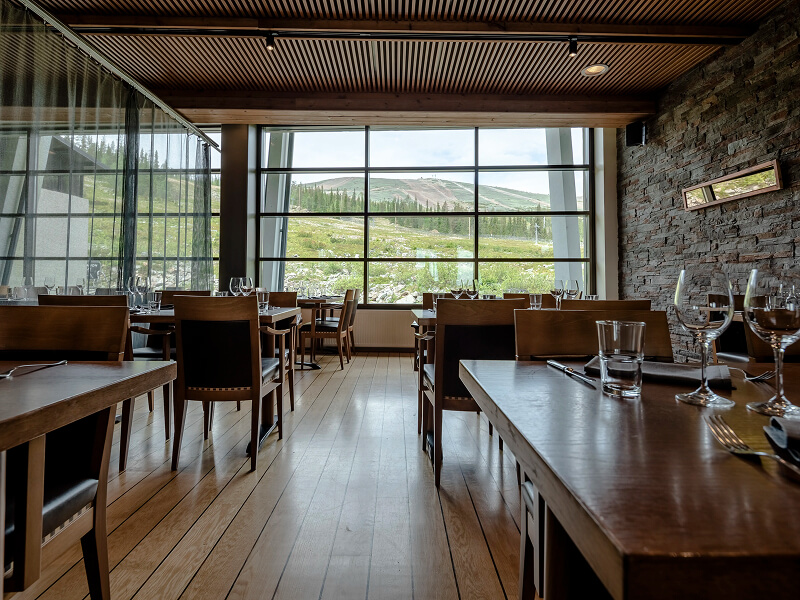 The main restaurant serves a breakfast buffet of hot and cold items each morning and a choice of local and international buffet fare at dinner. Restaurant Saaga opens for lunch and dinner from late November to early May and is a bistro-style social gathering place with tasty Lappish-style food and skyline views. The Fireplace Bar offers a menu of drinks to sip around the feature fireplace.