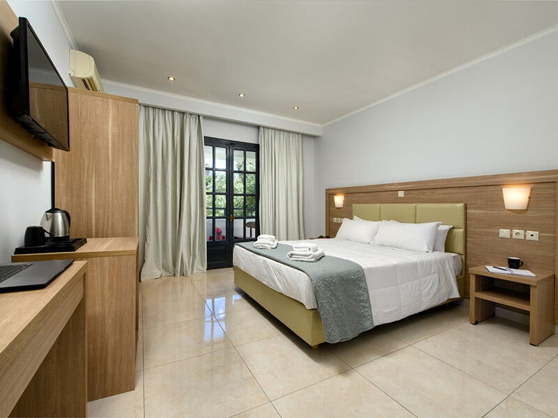 Sun Gate Hotel has 78 refurbished guest units across three categories; comprising Standard Double Rooms, Single Rooms, and Family Garden View Rooms. Standard Double rooms are the ideal haven to unwind and kitted out with homestyle comforts - from a plush double bed and a private balcony or terrace with garden views to air-conditioning, coffee-making amenities, safe, fridge, telephone, plasma flat-screen television, alarm clock, complimentary Wi-Fi, laundry and daily maid service, and a bathroom with shower, towels, and complimentary luxury toiletries.
