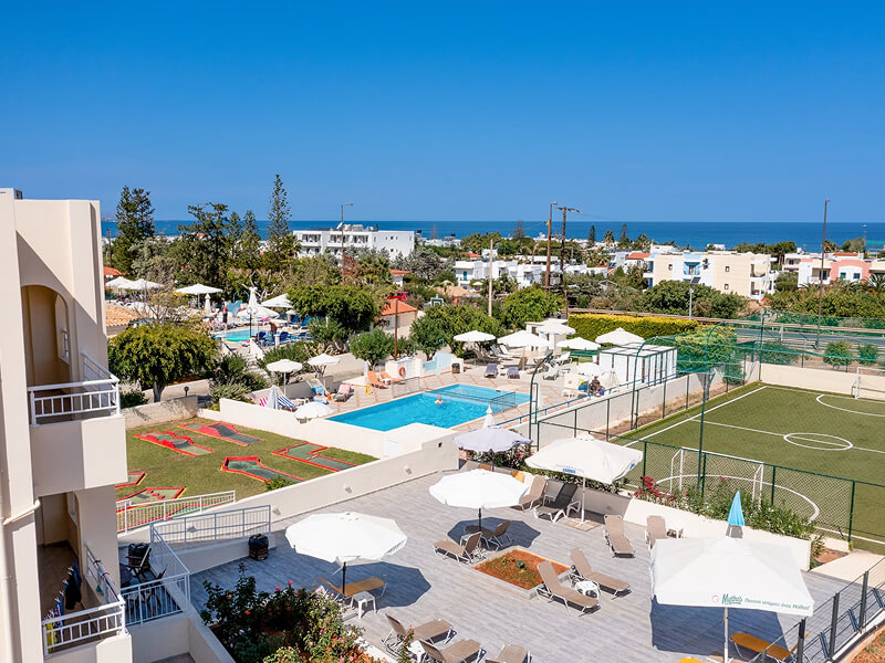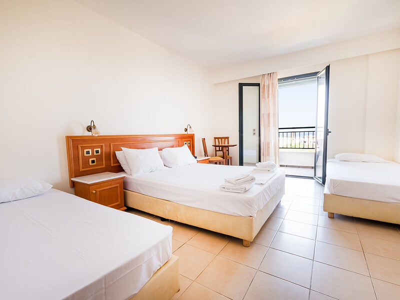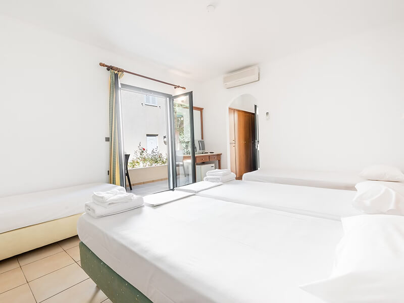 The Hotel Anastasia features 79 airconditioned rooms in 13 different buildings, all with a balcony or terrace and views over the sea, pool or garden. There are 34 family rooms, 33 triple rooms and 12 double/twin rooms. All rooms have a private bathroom with bath and are equipped with a fridge, kettle available at extra charge, telephone, radio, hair dryer, Satellite TV as well as a safe deposit box at extra charge. Some facilities may incur a local charge. Family rooms can accommodate up to 4 people with 4 single beds or 1 double bed + 2 single beds (no adjoining rooms).