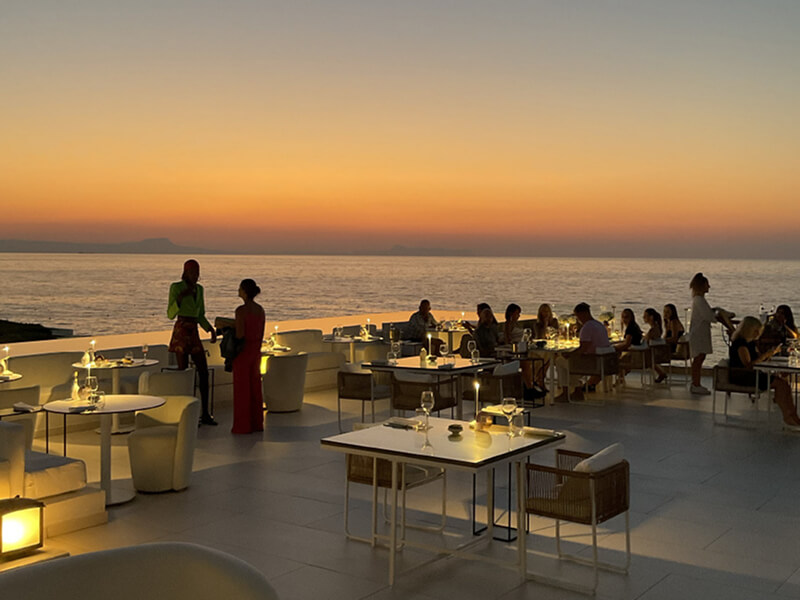 Dining at Grecotel LUXME White offers everything from Mediterranean buffets and themed nights to adult‑only degustation menus at The White Restaurant. Enjoy Asian dishes by the sea, fresh lobster with sparkling wine, Italian classics poolside, and traditional Cretan flavours at Agreco Farm. Treat yourself to crepes, gelato, pastries, and afternoon tea, or grab poolside snacks. Evenings bring cocktails with sunset views, lively beachside entertainment, wine tasting, films, kids’ shows, and the famous White Palace Parties.