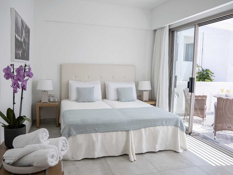 This Sissi hotel has a total of 134 modern guest units across six categories; ranging from Standard Garden View Rooms through to Two-Bedroom Suites. Standard Garden View Rooms are equipped with a furnished balcony, a queen-size bed or twin single beds, air-conditioning, complimentary Wi-Fi access, bathroom with shower, shaver socket, hairdryer, and complimentary toiletries; satellite television, daily housekeeping, work desk, wake-up service, and pool towels.