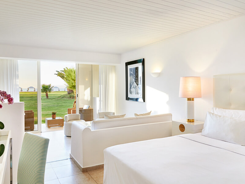 All rooms, suites, villas and bungalows at Creta Palace blend breezy elegance with thoughtful comfort. These air-conditioned spaces feature private balconies or terraces overlooking pools, gardens, or the sea. Inside, guests enjoy satellite TVs, complimentary Wi-Fi, minibars, coffee and tea making facilities, safety deposit boxes, luxurious ensuite bathrooms completed with robes, slippers, hairdryers and ample storage for a carefree stay. Family-friendly layouts and spacious villas with private pools ensure memorable moments, whether you’re seeking romance or a playful family retreat.