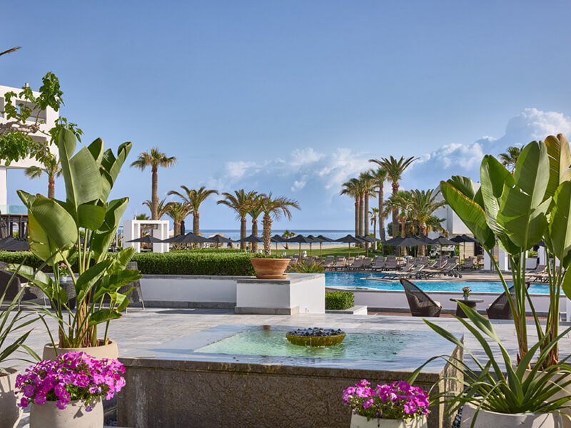 Grecotel Creta Palace unfolds like a private Greek village. Stroll through tropical gardens to the Blue Flag sand beach or three inviting swimming pools, including a children’s waterslide pool and an indoor freshwater pool. Active spirits will find watersports, beach volleyball, two tennis courts, table tennis, pedal boats, and fitness activities like yoga and aqua gym, while little ones flourish at the Grecoland kids’ club and open-air play zones. There’s also a 24-hour concierge, a serene spa sanctuary, private cabanas, ten bars and restaurants, plus direct access to the Cretan coastline.