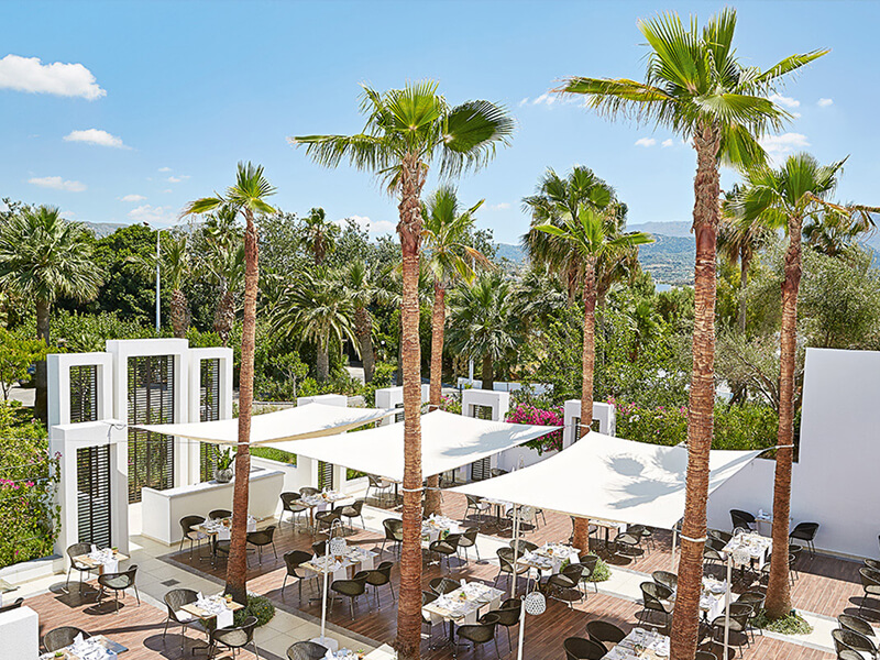 With ten food and drink venues, culinary discovery is at the heart of Creta Palace’s charm. Feast on Mediterranean flavours at the main Labyrinth buffet restaurant with Tasty Corner for children, savour fresh seafood at Barbarossa, explore Asian delicacies or toast the sunset at the Zeus + Amalthia Sky Bar. Poolside and beach bars offer light bites, gelato and cocktails with sweeping sea views, while the nearby Agreco Farm taverna celebrates authentic Cretan cuisine. Evenings shimmer with live music and Cretan festivities that bring the island’s culture alive.