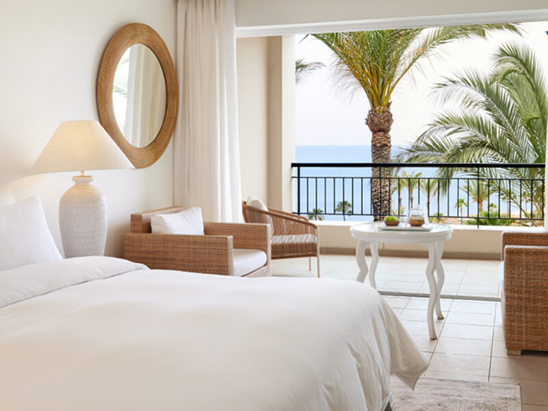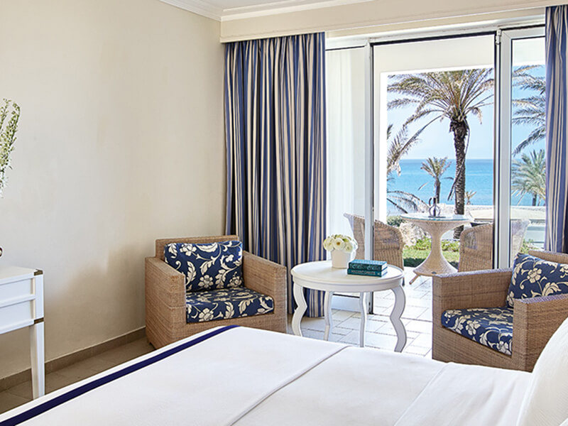 Rooms at La Riviera are thoughtfully designed with Ionian Sea views and breezy, Mediterranean-inspired decor to enhance your Greek holiday mood. Accommodation ranges from guestrooms and bungalows to family guestrooms and villas. As standard, rooms include air-conditioning, private terrace or balcony, Wi-Fi, satellite TV, mini-bar, and safety deposit box for comfort and convenience. Plush bathrobes, slippers, hairdryer, and complimentary toiletries complement spacious ensuite bathrooms, while family-friendly options and flexible bedding ensure every stay is as relaxed or adventurous as you wish.