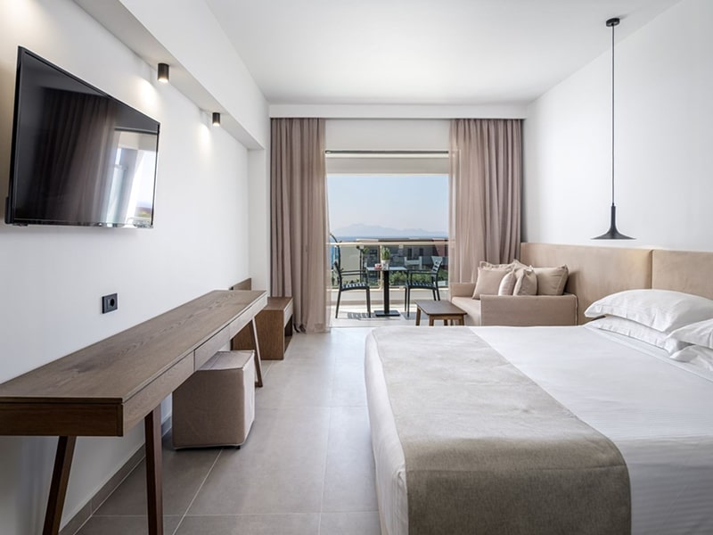Rooms at Michelangelo Resort & Spa are designed for calm, comfort, and those gorgeous holiday lie-ins. Expect light-filled interiors, soft linens, and a soothing palette inspired by the sea. Many rooms offer private balconies or terraces with beautiful views—perfect for slow mornings or sunset moments. Modern touches such as air-conditioning, Wi-Fi, stylish bathrooms, and handy in-room essentials ensure an easy, stress-free stay. Settle in, breathe out, and let your Kos retreat begin from the moment you open the door.
