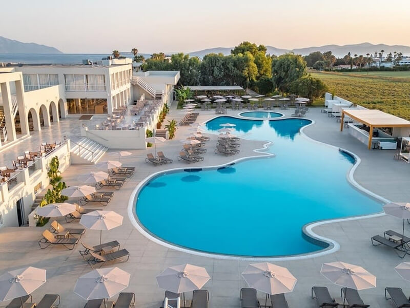 This Kos all‑inclusive hotel is made for families, offering a laid‑back vibe, excellent leisure facilities, and stylish rooms. Relax by the infinity pool or enjoy a massage, while kids have fun at the splash park and club. Stay active with tennis, volleyball, or gym sessions, then enjoy buffet dining, poolside snacks, tropical cocktails, and lively evening entertainment including quizzes, shows, and mini‑disco.