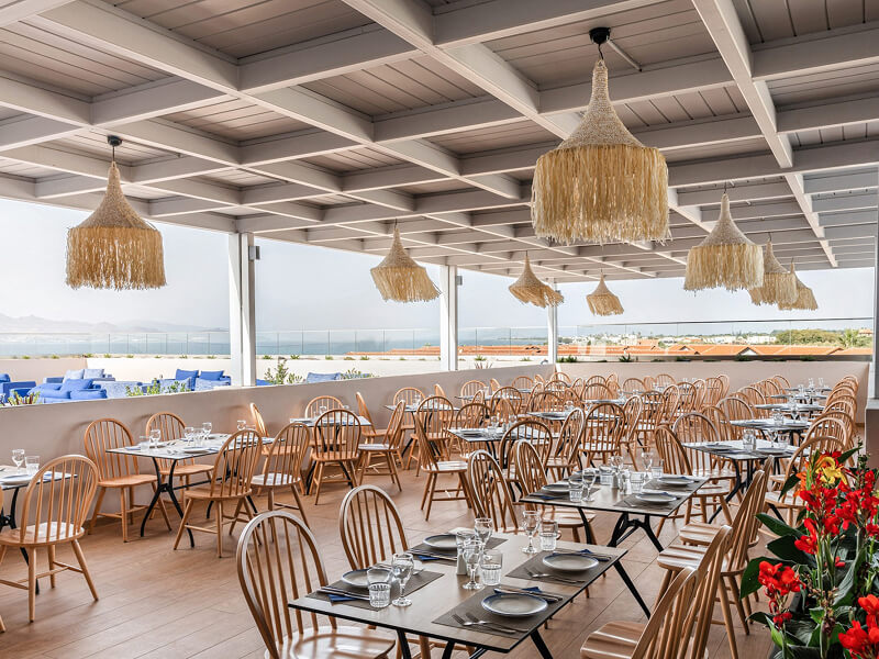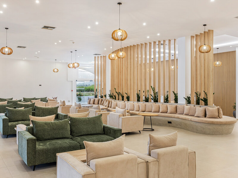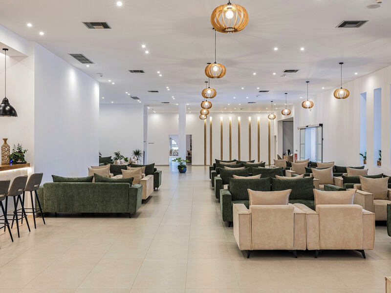 Nafsika Restaurant serves a diverse European and Mediterranean buffet. Feast on BBQ Snack Bar’s pizza, souvlaki, burgers, hot dogs, salads, fresh fruit, and pastries and Elea Sun Terrace A La Carte Restaurant’s Greek and Italian favourites. Enjoy Gelateria’s ice cream, waffles, fresh juices, and milkshakes. Calypso Bar serves hot and cold drinks, while Lotus Pool Bar offers an adult-only venue to sip your favourite tipples. Lobby Bar lets you relax or socialise whilst enjoying a menu of wine, cocktails, spirits, coffee, and beer.