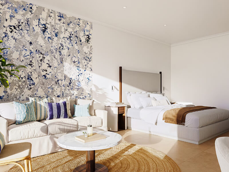 You'll find 292 modern guest units across 12 categories; ranging from Junior Suites to Villas Sea-View Suites Deluxe. The non-smoking Junior Suites are located in the hotel's main building and are light and airy and kitted out with homestyle touches to set the scene for a relaxing stay; from a king-size bed, sofa bed, and balcony with table and chairs to complimentary Wi-Fi, minibar (subject to charge), safety deposit box, air-conditioning, television, unlimited purified water, free of single-use plastic, and hairdryer.