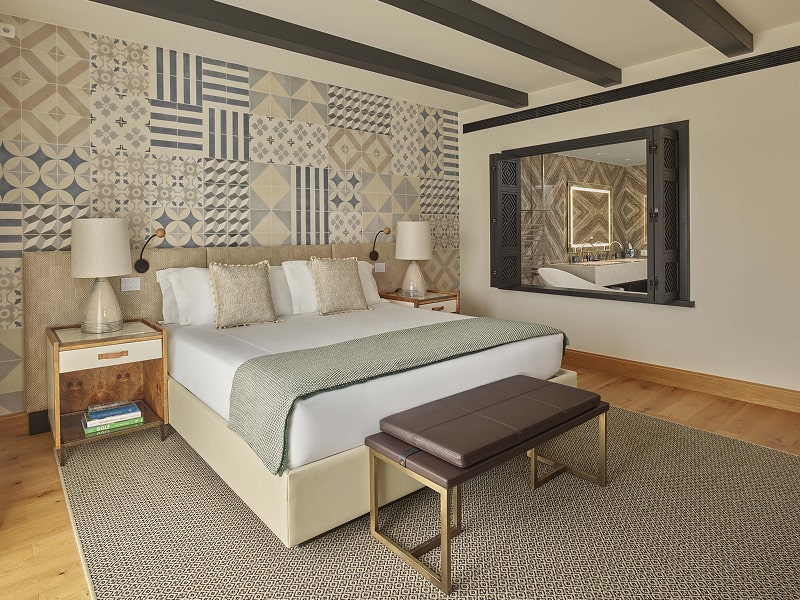 This luxury Algarve hotel has a total of 141 stylish guest rooms, suites, and residences across 24 categories. Deluxe King Rooms are kitted out with a king-size bed with premium bedding, furnished terrace, floor-to-ceiling windows with blackout curtains, LED Smart television, in-room wellness by The ClassTM, Nespresso coffee machine, tea/coffee amenities, bottled water, in-room dining, iron/ironing board, air-conditioning, safety deposit box, desk, complimentary Wi-Fi, USB charging, and marble bathroom with soaking tub, rain shower, plush bathrobes, and Corpus toiletries.