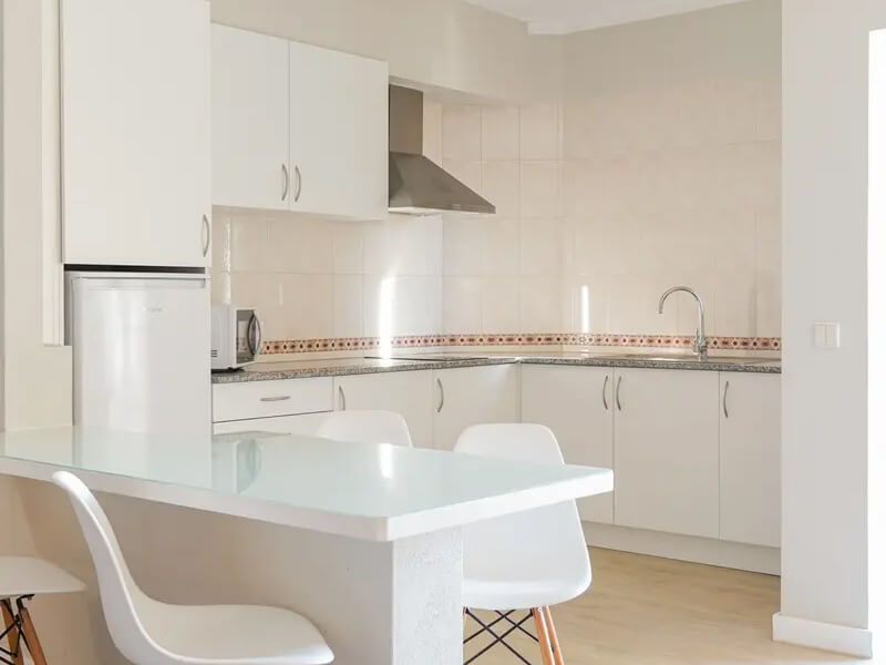 This Alvor holiday complex has a total of 74 modern One-Bedroom and Two-Bedroom Apartments Standard or Pool View. One-Bedroom Standard Apartments are kitted out with entrance hall, kitchenette equipped with microwave, toaster, coffee maker, fridge, water heater, kettle, and blender; lounge with sofa bed, bathroom with shower cabin, bedroom with twin beds or double bed, iron/ironing board, clothes rack, flat-screen satellite television, direct-dial telephone, air-conditioning in bedroom and lounge, complimentary Wi-Fi access, and furnished balcony.