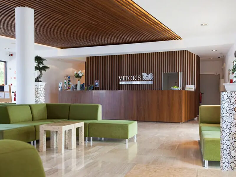 The facilities at Vitor's Village include: two outdoor freshwater swimming pools, children's splash pool, sun terraces with loungers, parasols, and deck chairs; restaurant, snack bar, bar, lounge, reading area with books and computer, gym, games room, table tennis, children's play area, complimentary transport to the beach and downtown area, complimentary high-speed Wi-Fi, minimarket, housekeeping service, self-service laundry*, lift, complimentary on-site parking, television with international channels, handicap-equipped rooms, and a 24-hour reception for tourist information/ticket sales*, bike* and car hire*, transfer service*, wakeup call service, and luggage storage. *incur a charge