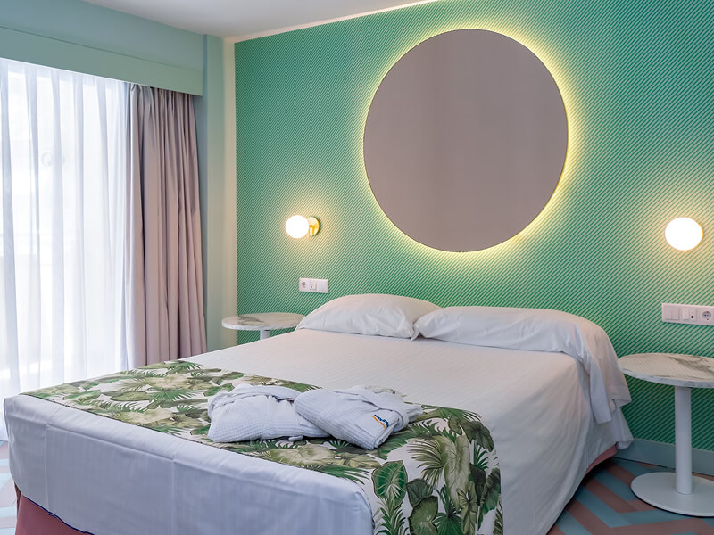 This Benidorm hotel has a total of 76 modern guest rooms and suites; comprising Double/Twin Rooms, Junior Suites, Double Rooms with Spa Access, and Apartments for 2/4 persons with Sea Views. Double/Twin rooms feature a double bed or twin beds, bathroom, balcony, individually controlled air-conditioning, heating, satellite television, telephone, complimentary Wi-Fi access, fridge, kettle, and safe.