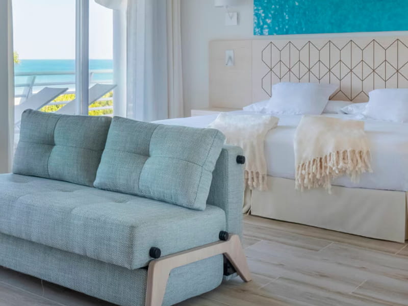 Iberostar Waves Royal Andalus has a total of 451 modern guest units across 17 categories; ranging from Double Rooms to Beachfront Suites Sea View. Make yourself at home in your non-smoking, light, and airy Double Room; featuring a garden view terrace with table and chairs, twin beds, Smart television with Google Chromecast, complimentary Wi-Fi, multi-charger, Type C plugs, air-conditioning/heating, minibar, safe, cot on request, telephone, unlimited purified water, free of single-use plastic, and bathroom with shower, hairdryer, and magnifying mirror.