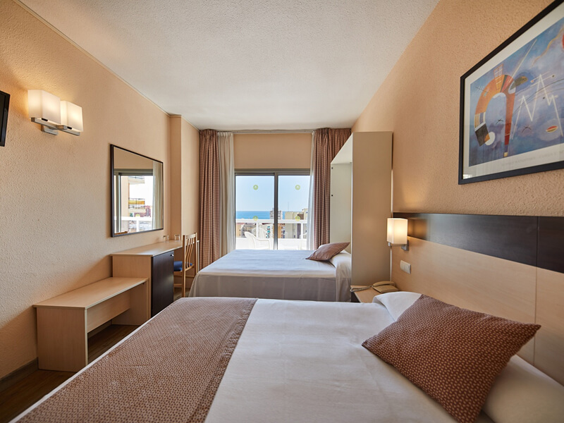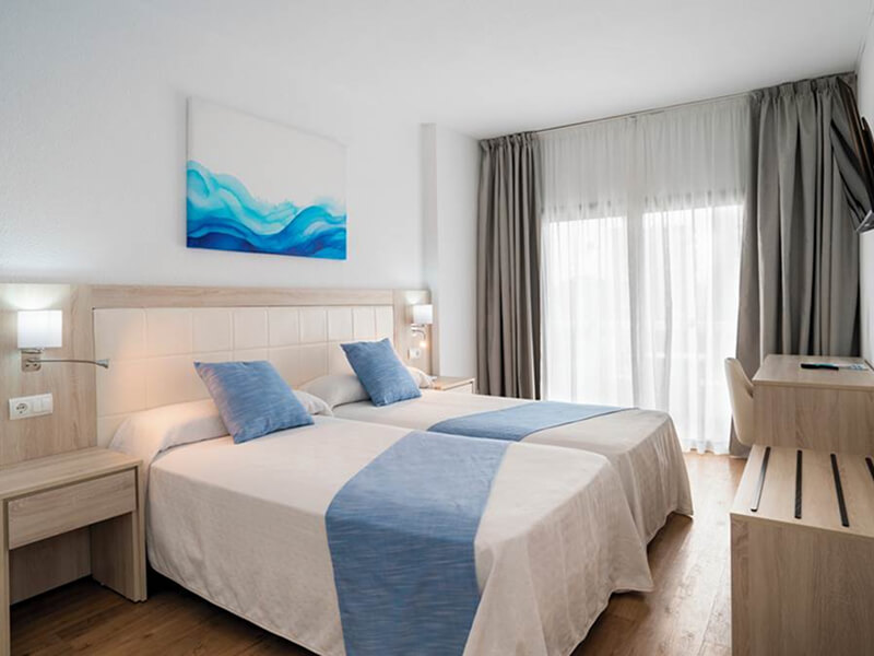 Sandos Griego Hotel has a total of 414 modern guest units; comprising Standard, Quadruple, Single, and Pool View Rooms. Standard Rooms are kitted out with twin beds or a double bed and one extra bed; air-conditioning and heating, bathroom with bathtub, shower, toiletries, and hairdryer; complimentary Wi-Fi, flat-screen television, furnished terrace, flat-screen television, telephone*, safe*, and late checkout*. *extra cost