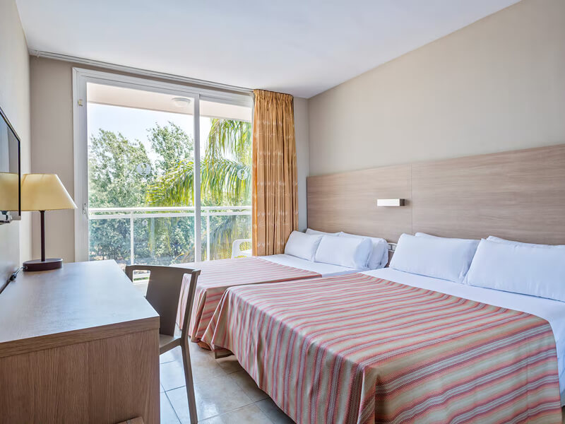 There are a total of 300 rooms, across 5 floors and in two different sizes. The standard sol room comes with either twin beds or a queen size bed. The family room comes with a queen size bed and a sofa-bed. All rooms have several features. Highlights include: balcony, flat-screen TV, air conditioning, garden view, pool view, satellite channels, hair dryer and free Wi-Fi.