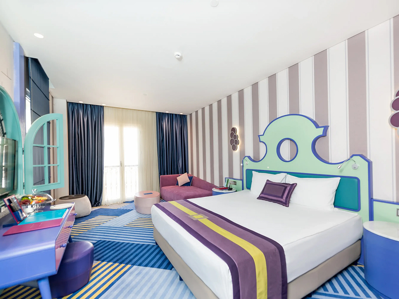 Bursting with colour and creativity, The Land of Legends Kingdom Hotel is a family playground where fantasy meets five-star comfort. Playful architecture, colourful interiors and seamless access to the legendary theme park set the tone, while spacious family suites and lively surroundings ensure every day unfolds with adventure, laughter and a little magic.