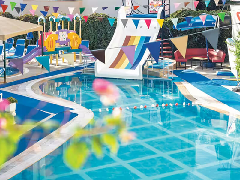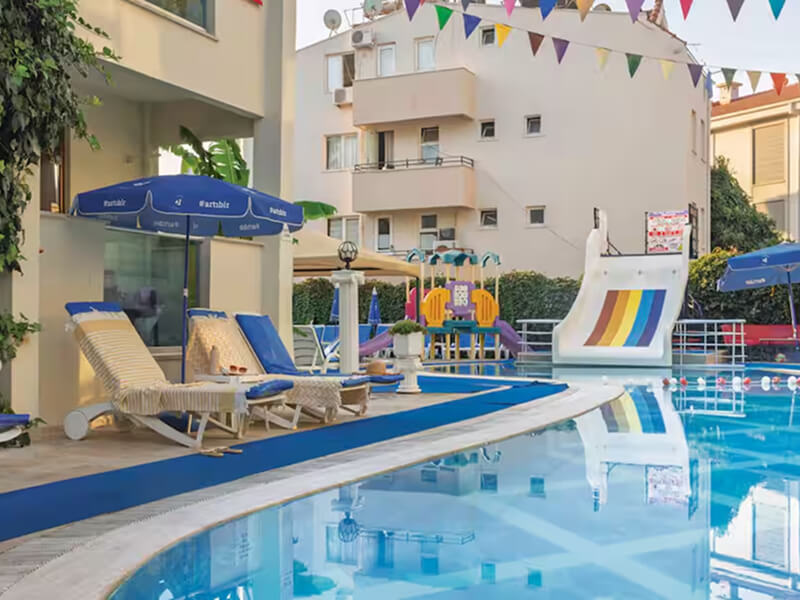 Club Evin offers a spacious pool, award‑winning dining, excellent facilities, and comfortable accommodation for a perfect stay in Turkey. Families can enjoy games, a spa, fitness centre, playground, and children’s pool. After relaxing days, unwind in bright apartments with kitchenettes, balconies, and satellite TV. Enjoy Turkish and international dishes, then explore nearby vibrant bars for evening cocktails.