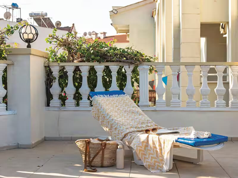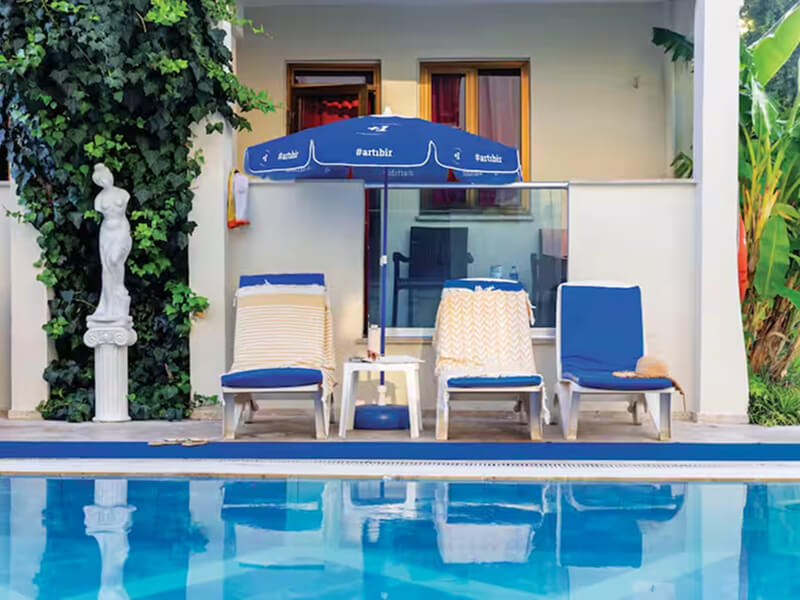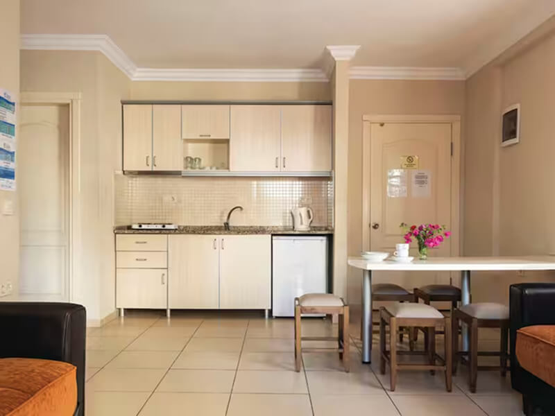 This Marmaris hotel has a total of 50 spacious and well-equipped guest units, comprising Studio, One-Bedroom, and Two-Bedroom Apartments. Studio Apartments feature Wi-Fi access, air-conditioning, balcony, lounge area, bathroom with shower, double bed, satellite television, and kitchenette with fridge and hob.