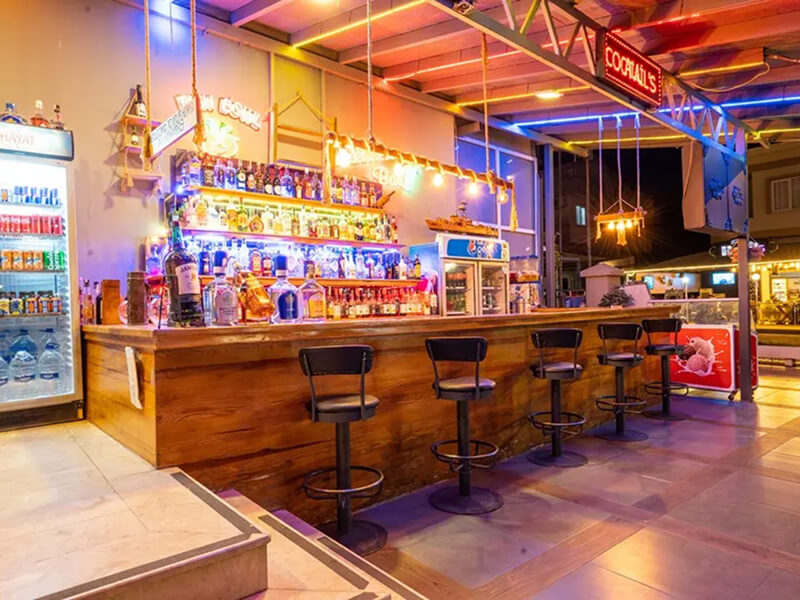 The apartments have a waiter service restaurant serving an a la carte menu of Turkish, English and international cuisine. There is also a bar.