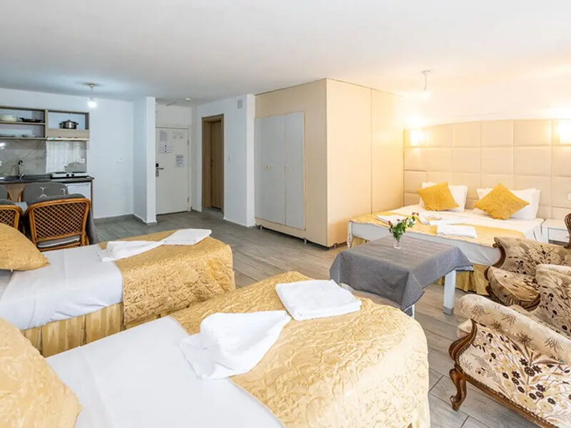 The complex features an outdoor pool, children’s pool, sunbeds, and a poolside bar. Guests can enjoy Playstations, pool tables, internet access, and varied entertainment day and night. Daytime activities include pool games, table football competitions, and bingo. Evening entertainment offers traditional Turkish dance, belly dancers, staff shows, and a nightly disco from 10pm to midnight. It’s a lively, family-friendly atmosphere with plenty to do for all ages.