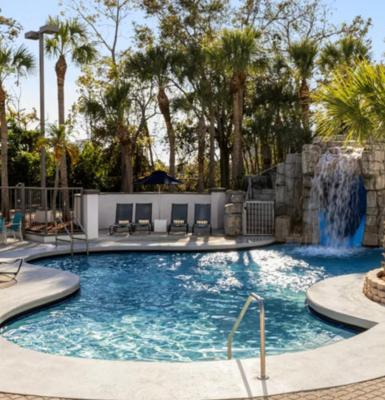 Fly into Orlando and check into your hotel for the first seven nights on a room-only basis. This Lake Buena Vista 200-room hotel offers easy access to Orlando’s top attractions. The Queen Bed Standard Rooms feature: a flat-screen television, coffee maker, mini-fridge, room service, air-conditioning, Wi-Fi, iron/ironing board, and a bathroom with toiletries and hairdryer. On-site you’ll find: a resort-style pool and waterslide adventure, terrace with fire-pit, indoor pool, fitness centre, restaurant and lounge, area shuttle, Wi-Fi, and a 24-hour reception.