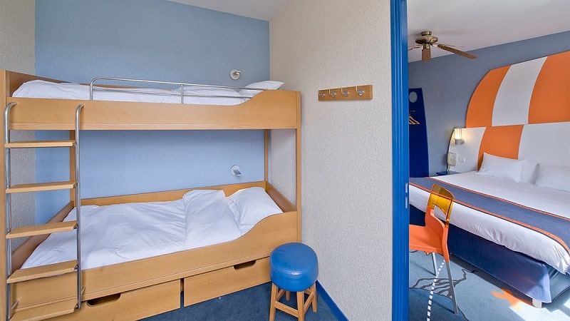 The 3* Explorers Hotel at Disneyland Paris offers well-appointed, comfortable guestrooms designed for a great family stay. Each room is equipped with a bathroom, satellite TV, pay-per-view movies, direct dial telephone, hairdryer, individual heating, in-room safe, tea/coffee facilities, and Wi-Fi access. Disabled-friendly rooms, infant cots, and ironing facilities are available on request, ensuring convenience for all guests. With views of the surrounding areas, these rooms combine practicality and comfort, making them an ideal base for enjoying Disneyland Paris.