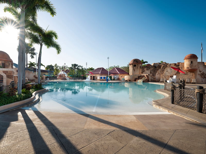 Disney’s Caribbean Beach Resort offers a comprehensive range of guest facilities designed to support a comfortable and convenient stay. The resort features six swimming pools, including a large, pirate-themed main pool with water slides, alongside quieter village pools spread throughout the property. Dining options include five eateries, from quick‑service locations to table‑service dining and the Banana Cabana pool bar. Additional amenities include babysitting and childcare services, Minnie Van™ transportation, 24‑hour self‑service laundry and dry cleaning, mail services, merchandise delivery, and extensive Disney transportation, including buses and the Disney Skyliner gondola system